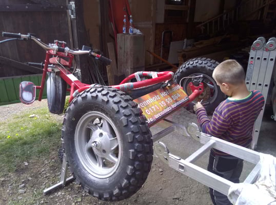 Für einen erfolgreichen Sommerbetrieb werden zur Zeit auch die Bullcarts gewartet. Bei einem Cart mussten wir einen platten Reifen wechseln, bei einem anderen musste eine Reparatur am Rahmen