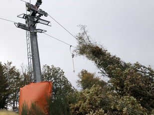 Unser angesetzter Arbeitseinsatz am Samstag den 23.10. lief letztlich unter dem Motto "Glück im Unglück"! Angesetzt waren für den Tag schon einige Arbeiten für die anstehende Hüttenöffnung und für den Winterbetrieb. Jedoch hat uns das Sturmtief Hendrik unnötige Arbeitet bereitet. Zunächst war nach den Orkanboen am Donnerstag bereits der Zufahrtsweg auf den Eichholzkopf durch umgefallene Bäume versperrt, aber es kam auch zu Schäden im Bereich um die Hütte. Und die umgefallenen Pfosten des Netzes am Volleyball-Feld waren noch harmlos. Im oberen Drittel der Lifttrasse waren drei Bäume - Birken und eine Eiche - auf unser Seil vom Schlepplift gestürzt. Somit hieß die primäre Aufgabe: den Lift von den Bäumen befreien!